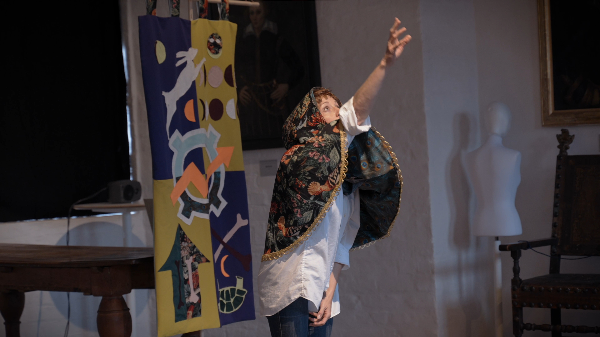 2022 - Malmö Konstmuseum Public Performance: Storytelling Folk Song Performance with handmade textile flags and hoodsThe Feast of the Red Robins is a fictional secret society dinner gathering that takes place once every 100 years at Malmö Castle where ‘The Red Robins’, who are a secret society of outlaws, discuss their plans to bring their own type of outlaw justice to the world. All of these outlaws have Robin Hood as their role model and although they all agree on that they have very different politics and views about how outlaw justice should be enacted. “Rob from the rich to give to the poor” for some outlaws it can be to “Rob from the poor to give to the rich”. The society is full of different takes on the original politics, from digital information cryptocurrency outlaws to decolonial warriors, from cultural appropriation outlaws to the popular politics Robin Hood. All we know about these mysterious figures is from the songs we sing and stories we tell about them. You are invited to come and hear these songs and listen to these stories.