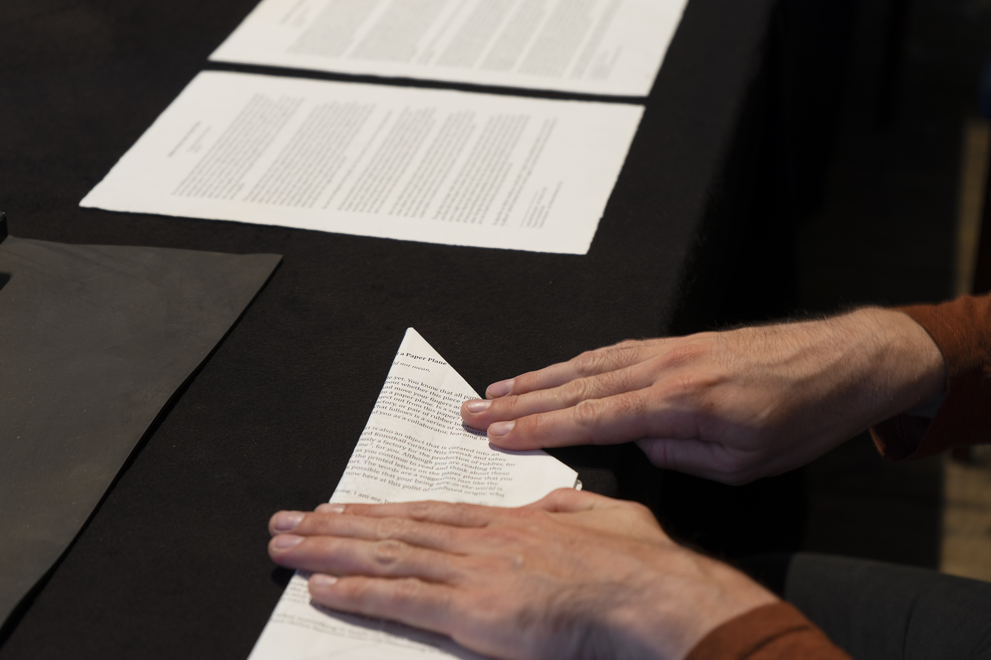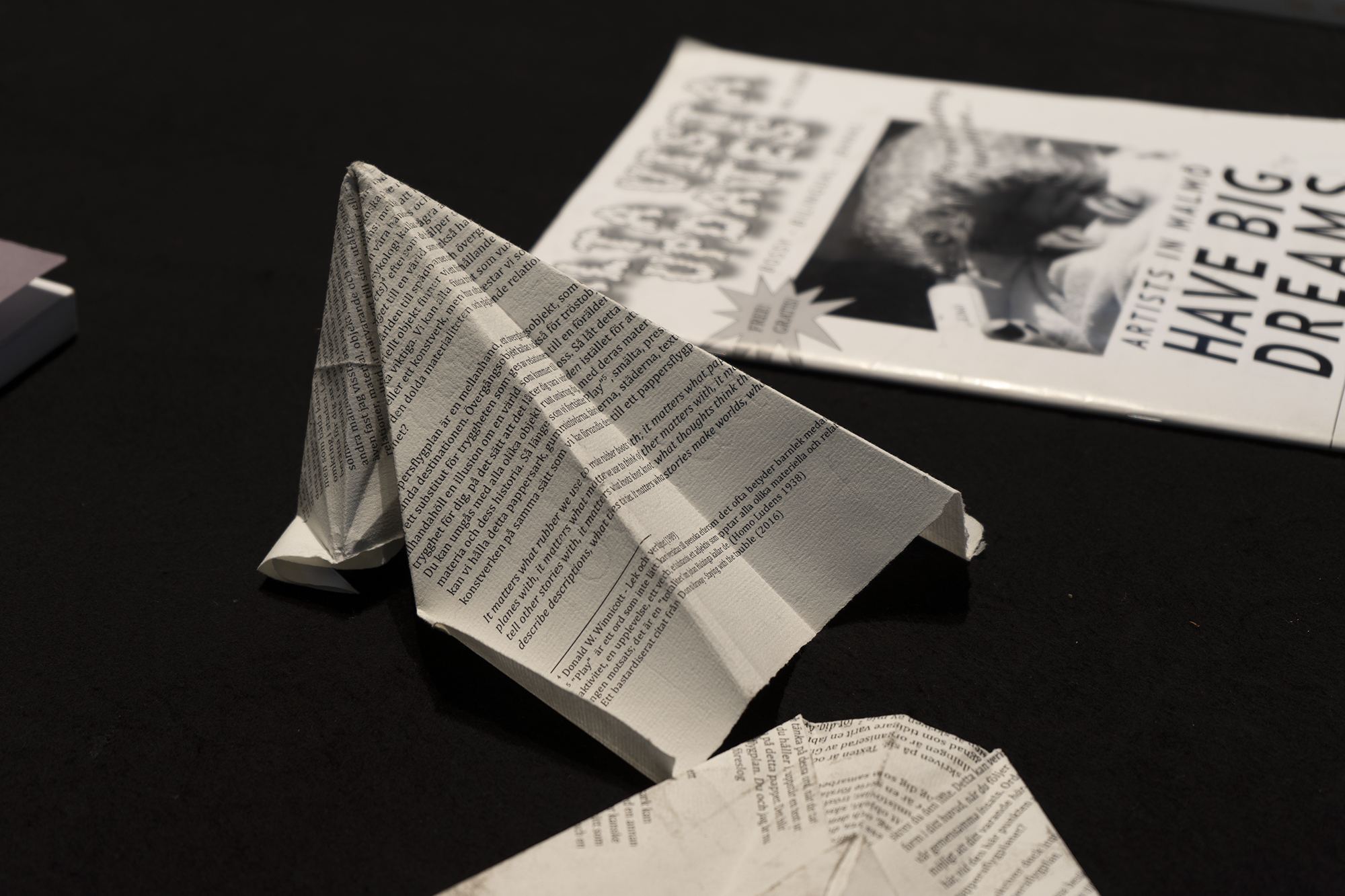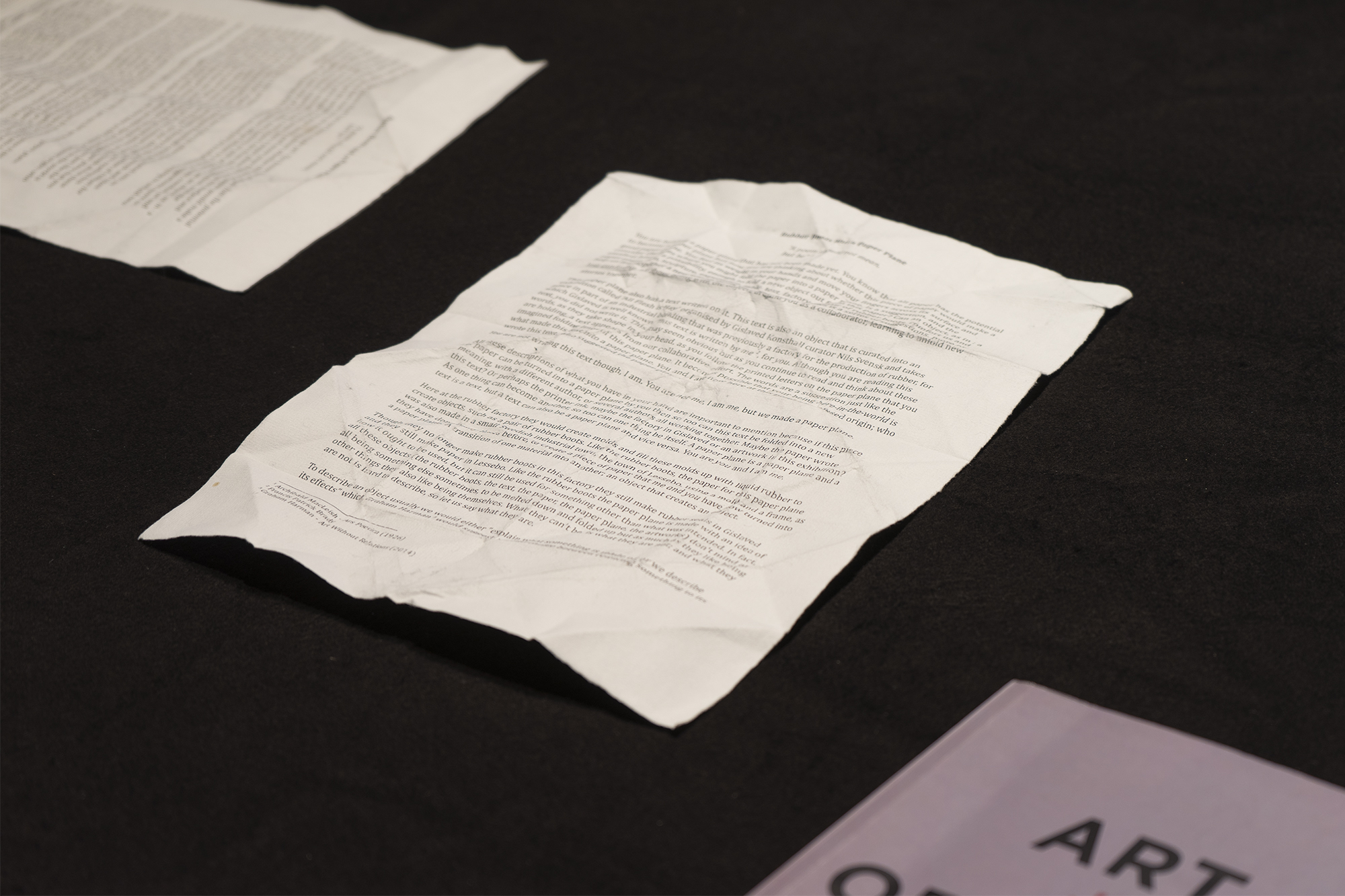 A Text printed on pieces of hand made paper from Lessebo that was also a paper plane.