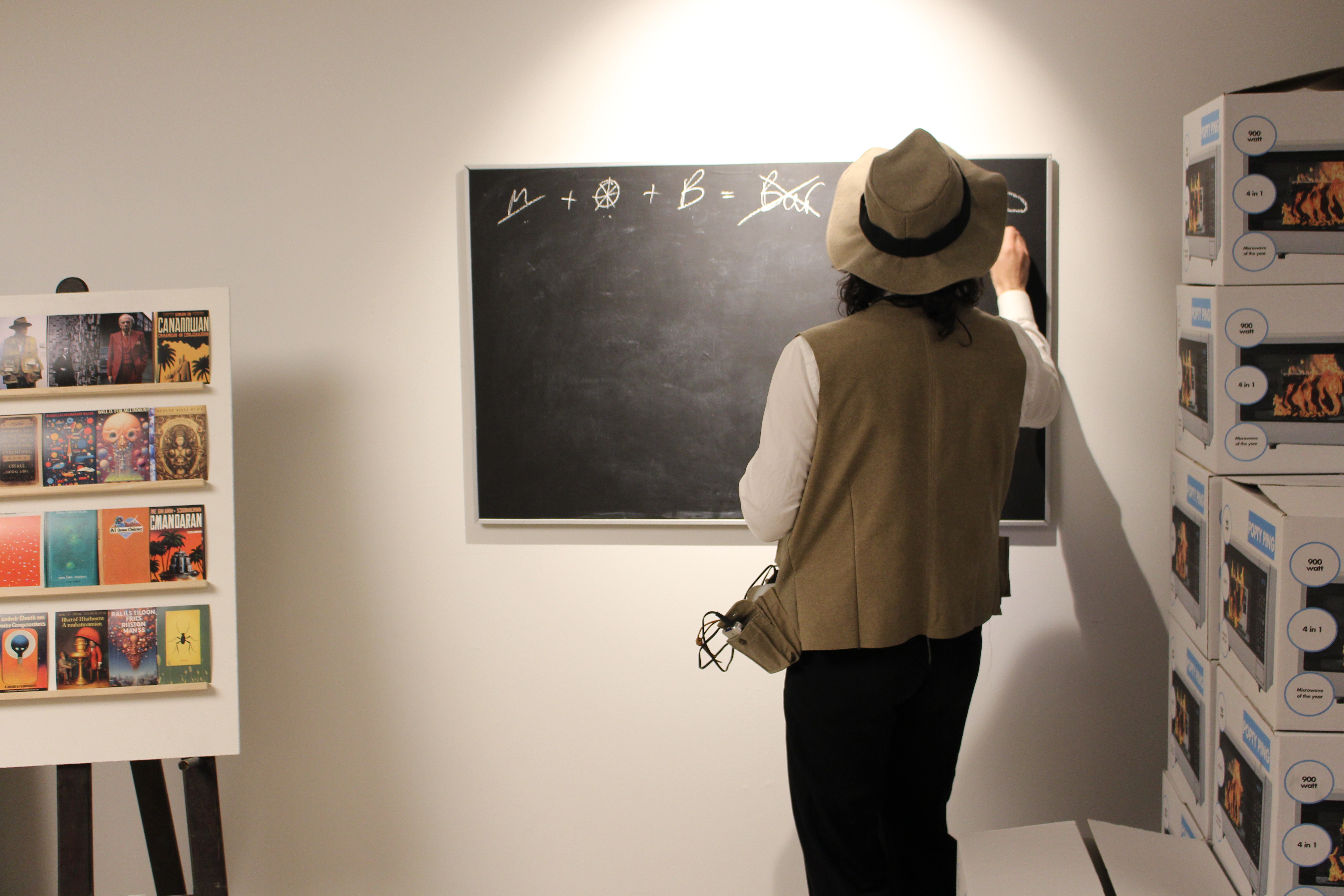 It is a participatory performance of an argument between modernism, postmodernism and our contemporary time period using AI to help imagine and leaf through the infinite library of babel which contains all the books ever written and all the books that will be ever written. Does access to infinity make all artwork meaningless? or … are our lives still just as interesting as they were before?